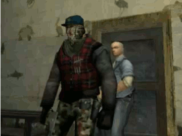 Manhunt's feeling of dread and hopelessness is being invoked not only by the horror aspect of it, but also by functioning stealth mechanic. Each level of the game is populated with patrolling enemies and the level design of each map numbers a handful of spots for you to hide and observe enemy's route for further successful backstabbing with a weapon of your choice, be it a pair of bare fists or a piece of mirror. Enemies are aware of the sounds you produce and the unfortunate appearings in their line of sight. They have three states of awareness - calm, suspicious and fully aware of your presence. Calm hunters usually talk to themselves.
